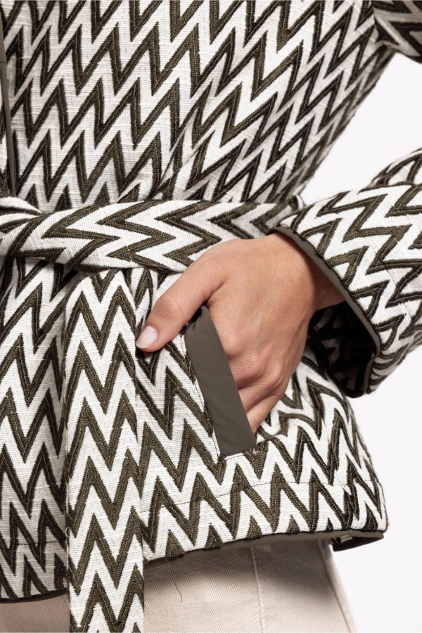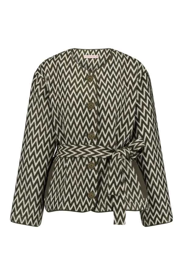 Het Azra zig zag jacket van Studio Anneloes is een stijlvol en veelzijdig jasje dat een subtiele retro vibe toevoegt aan je garderobe. Dit jasje in de kleuren New Army en Kit heeft een opvallend zigzagpatroon, wat het een speelse en moderne uitstraling geeft. De regular fit en de bijpassende strikceintuur zorgen voor een flatterende pasvorm die je figuur mooi accentueert.
